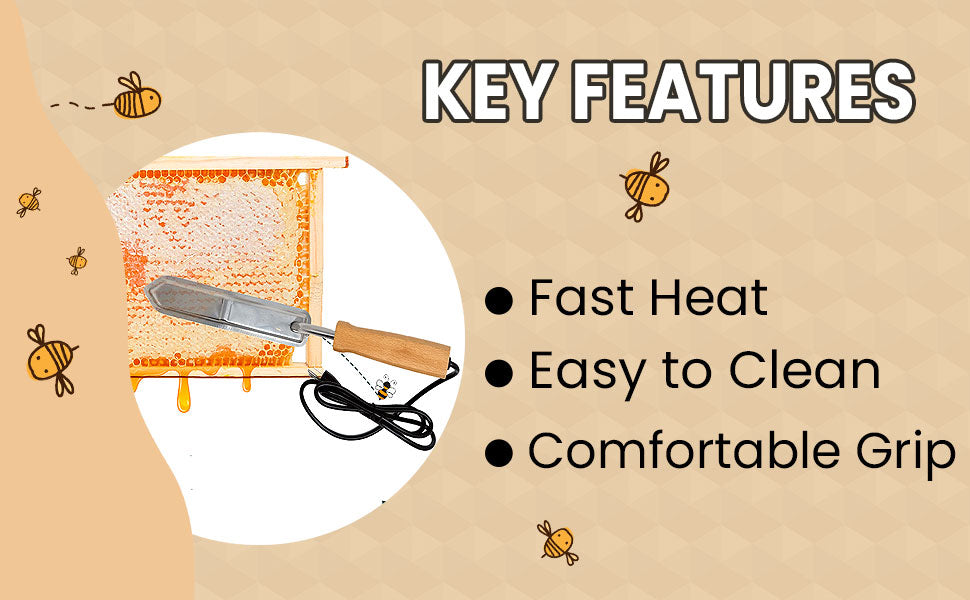 Reduced Waste & Damage – Consistent blade temperature helps avoid honey burning or frame damage.